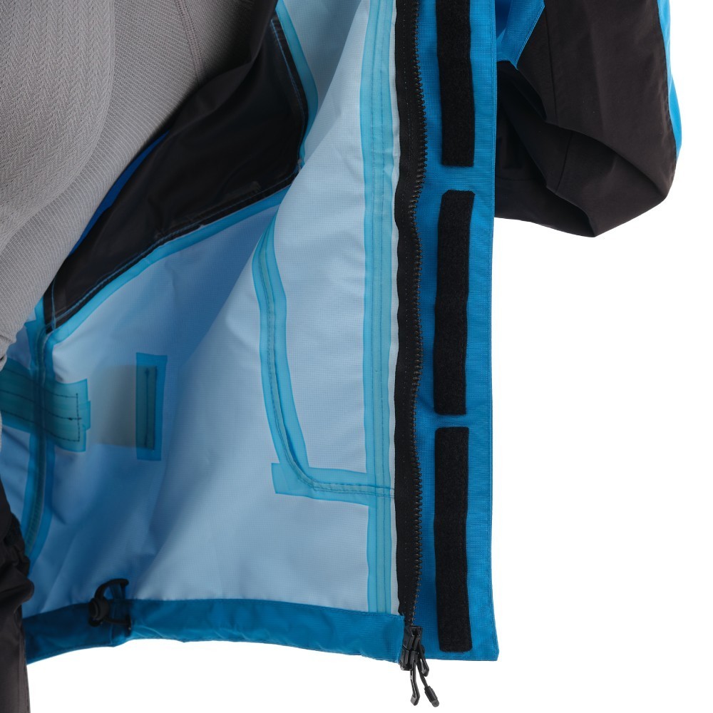 Двойная планка с водоотводящим клапаном и резиновым держателем для комфортного расстегиванияНагрудный карман на молнии, скрытый за планкойСистема утяжки (на предплечьях, запястьях, сзади на талии) для уменьшения парусности и адаптации под индивидуальные параметры