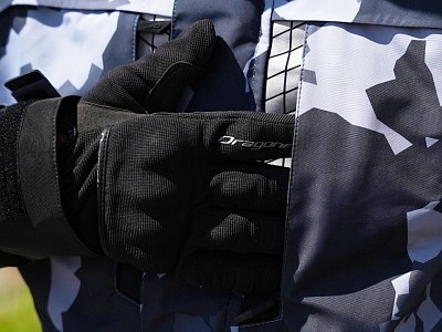 Перчатки изготовлены из быстросохнущих технологичных материалов. Внешняя оболочка состоит из полиэстера с добавлением синтетической кожи повышенной прочности, подклад – из эластичного полиэстера.