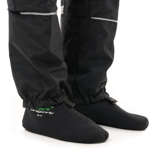 - Внизу штанин "юбки" из пятислойного мембранного материала, с помощью крючка цепляющиеся на ботинки