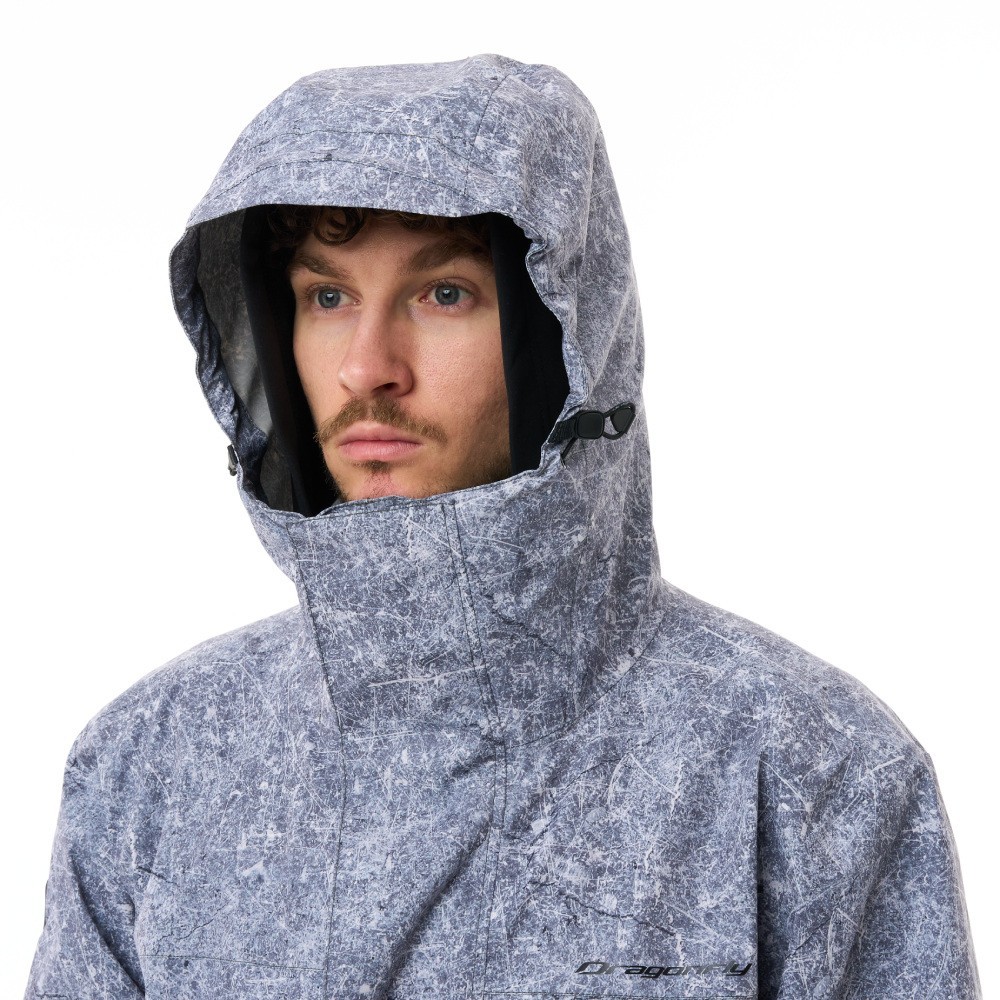- Компактный несъемный капюшон имеет утяжку по контуру, надежно защищает голову и лицо от осадков