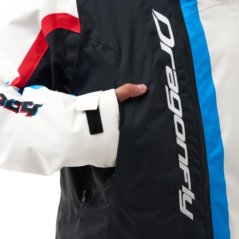 - В рукавах – эластичные манжеты из лайкры с отверстием для большого пальца, в штанинах – снегозащитные "фонарики" с резинкой на кнопке для зацепа на боты